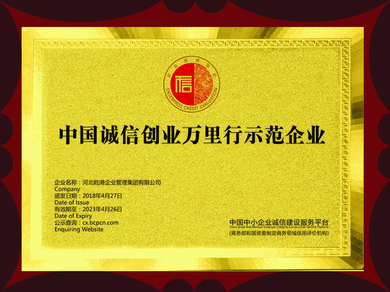 中國誠信創(chuàng)業(yè)萬里行示范企業(yè)